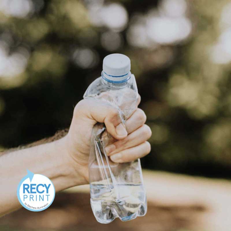 Les bouteilles en PET (polyéthylène téréphtalate) issues du tri sélectif sont transformées puis injectées dans nos imprimantes 3D pour produire des décors d’une multitude de couleurs.